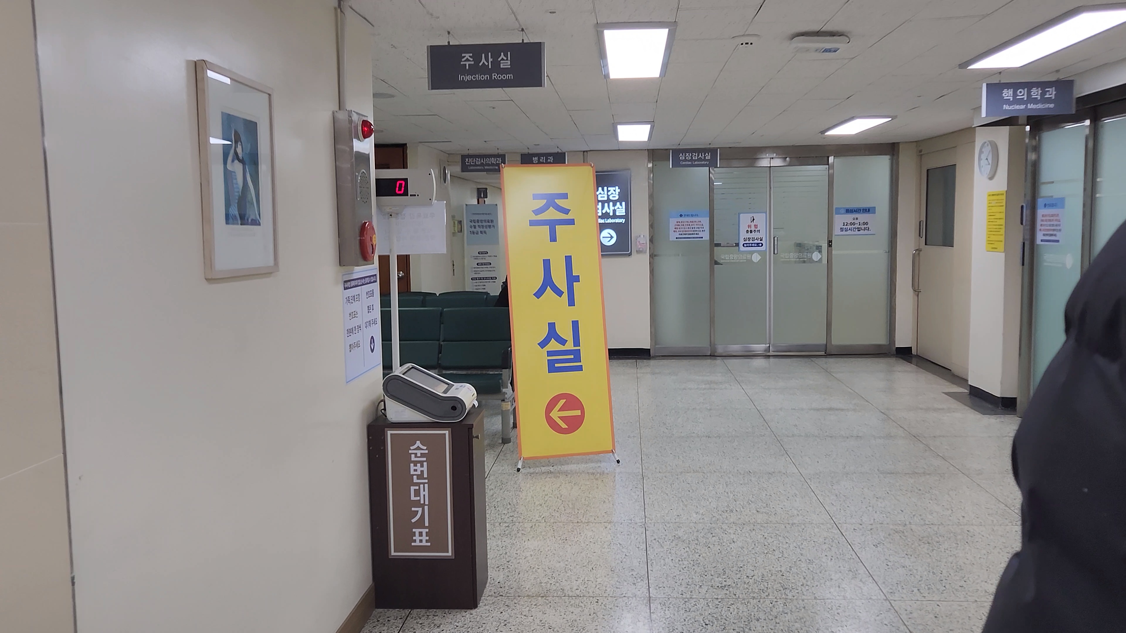주사실에서 대기표 뽑고 밖에서 기다리면 번호가 뜬다. 들어가면 방에서 주사를 모두 맞는다.