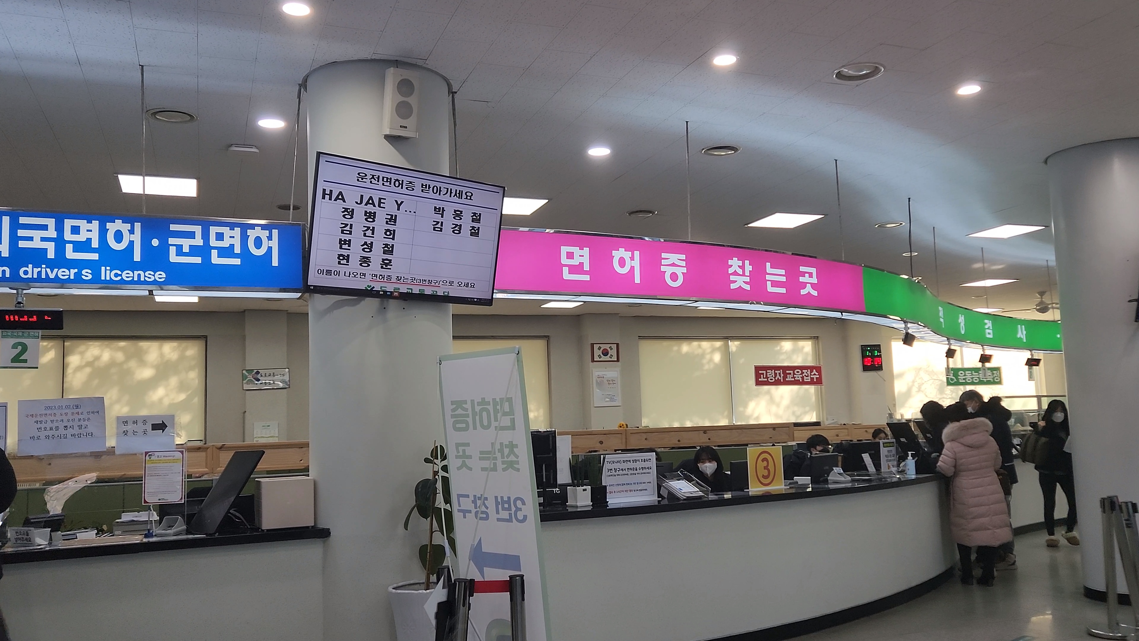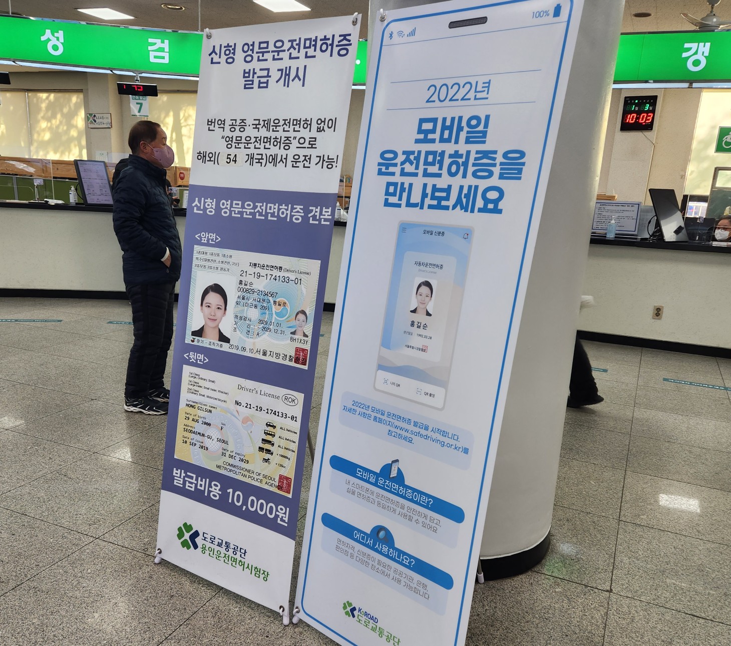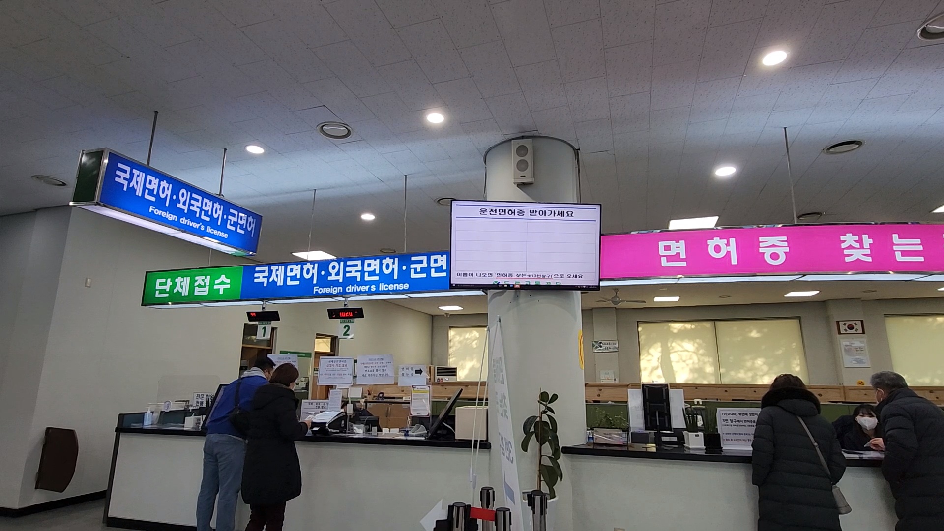 오른쪽이 면허증 찾는 곳, 왼쪽이 국제면허증