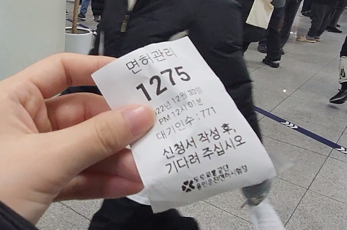 그러나 나는 일단 국제면허증 대기 번호표 먼저 뽑고 면허 찾는 것 기다림ㅎㅎ 내 선택이 옳았다