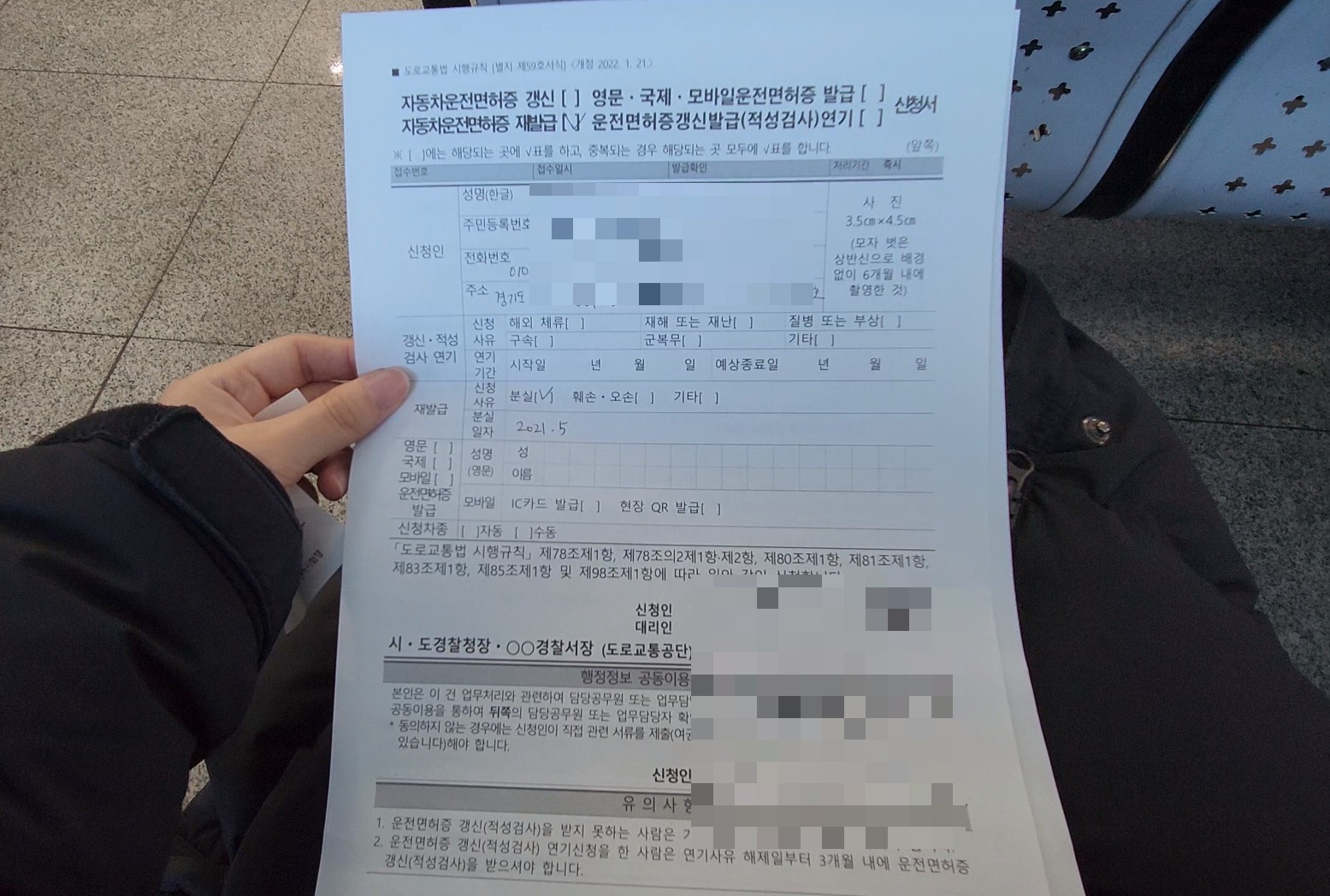 재발급과 국제면허증 발급을 한곳에서 하는 줄 알고 신청서 2장을 작성했다. (알고 보니 국제면허증은 왼쪽에서 따로 접수해야 했다. 이후에 설명)
