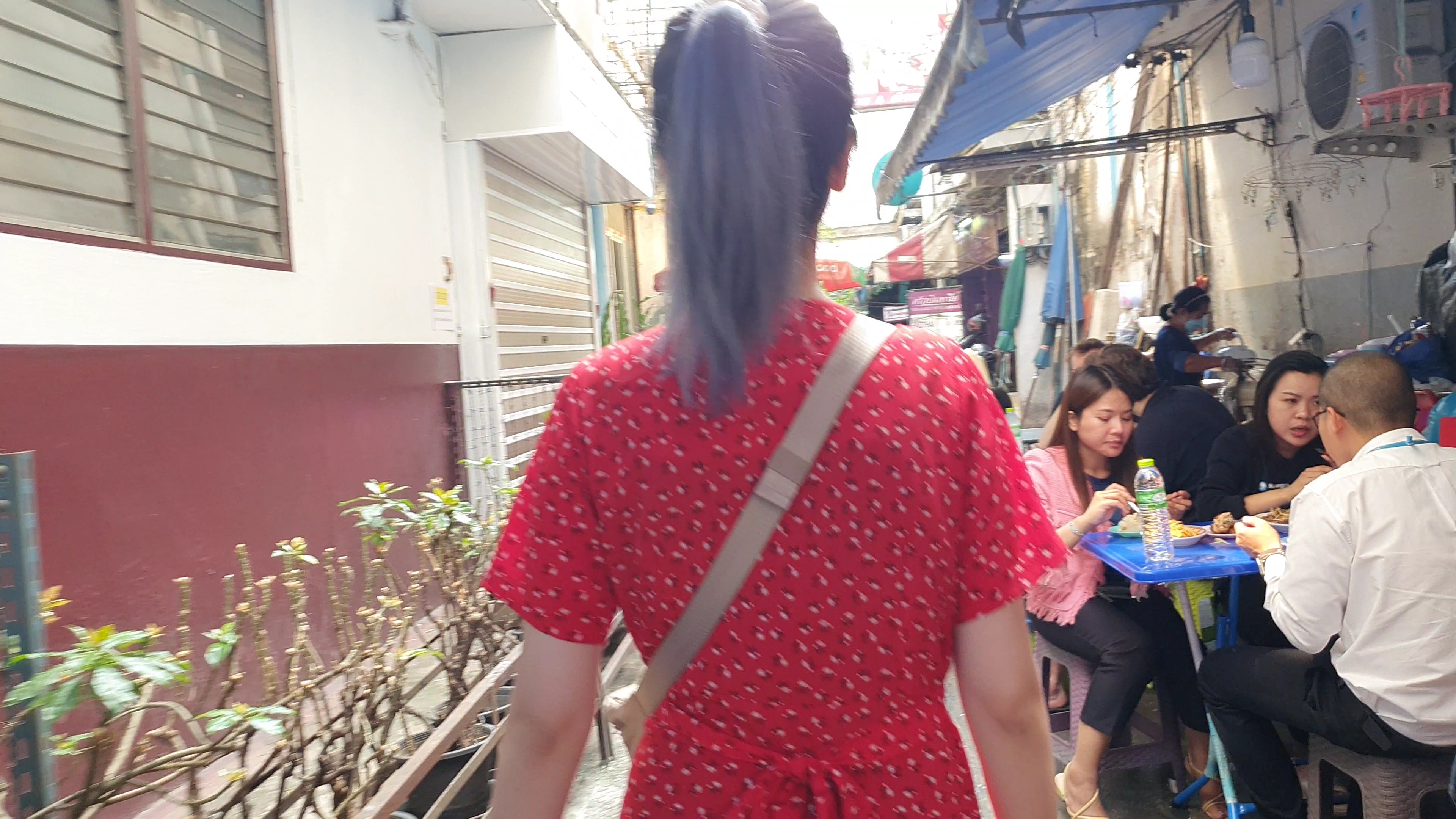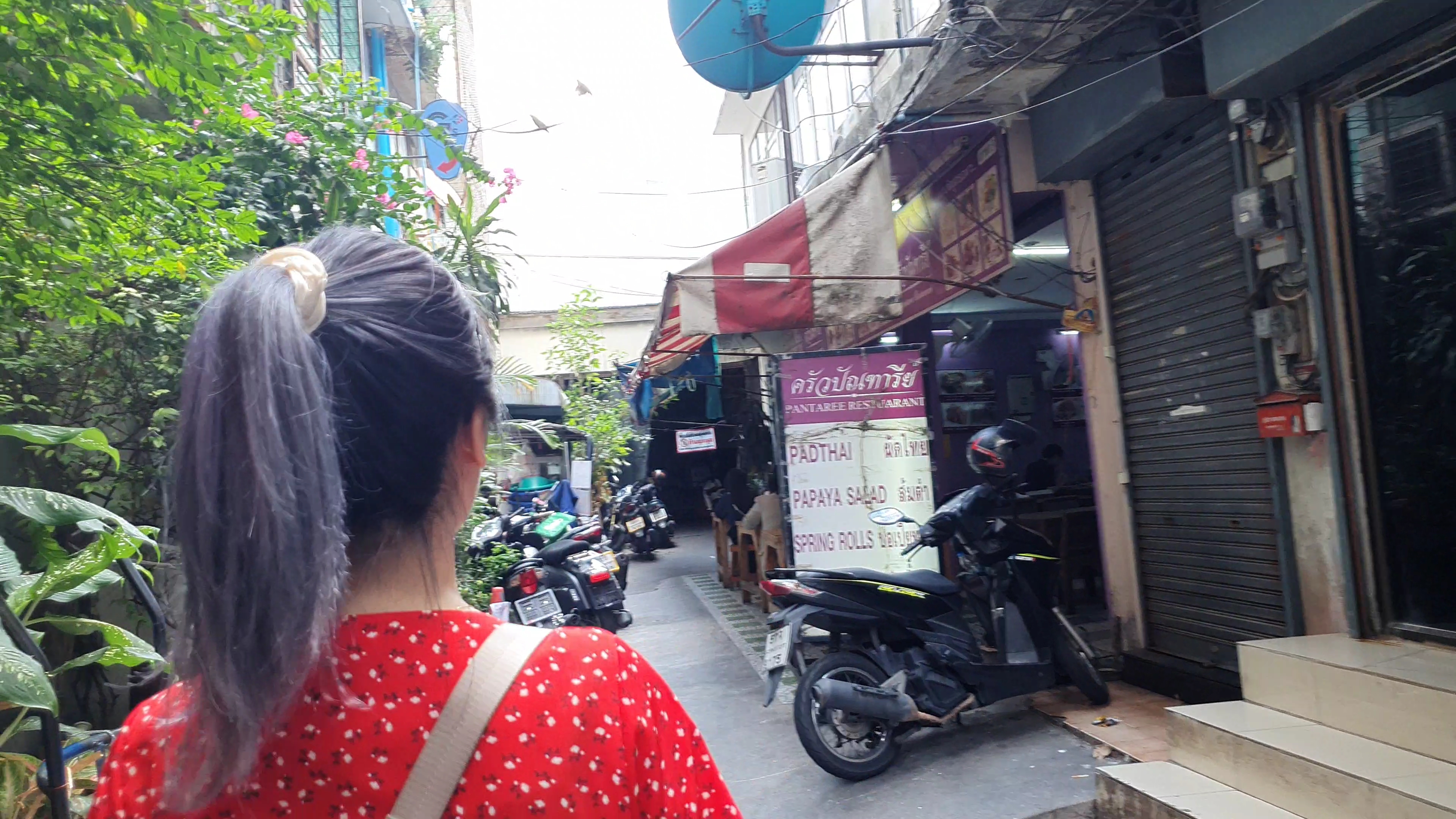 보라색 간판의 빤타리가 보인다. 빤타리는 다 와서 골목 맨 안쪽으로 들어가야 하기 때문에 가는 길을 잘 봐야 한다. 가까이 왔을 때 잠깐 얘기하면서 걷다가 다시 돌아갔다. 큰길에서는 간판이 안 보인다. 갑자기 확 틀어서 간판이 없더라도 확신을 갖고 골목 안으로 들어가야 한다.